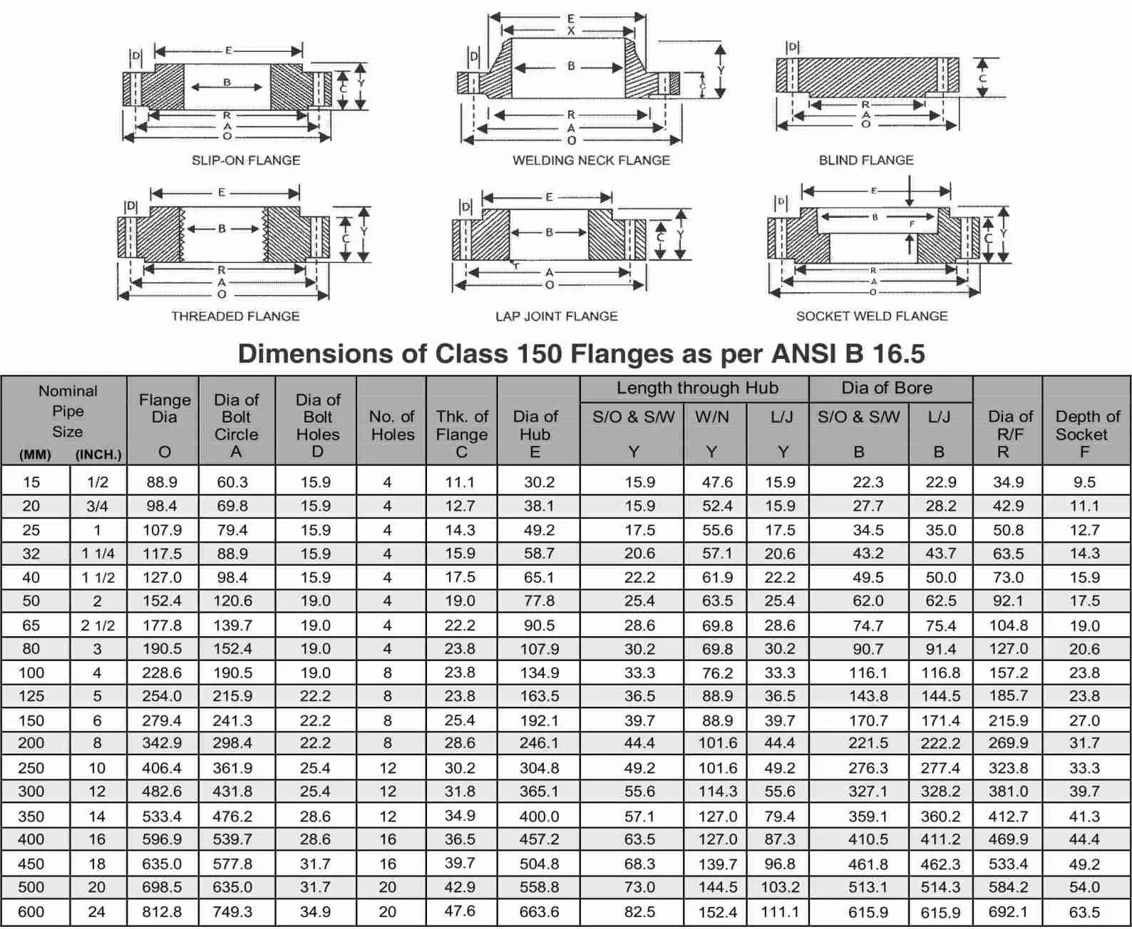 ASME B16.5 | Weld Neck, Slip-On, Socket Weld, Threaded, Lap Joint, Blind, Orifice | Class 150, 300, 400, 600, 900, 1500, 2500 |